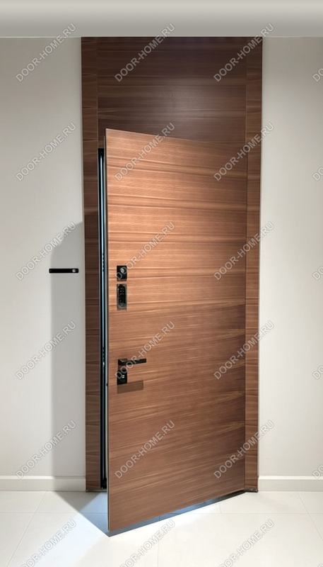 Металлическая дверь с МДФ декоративный шпон с линейной фрезеровкой и скрытыми петлями № 30 Арт.DH-1318